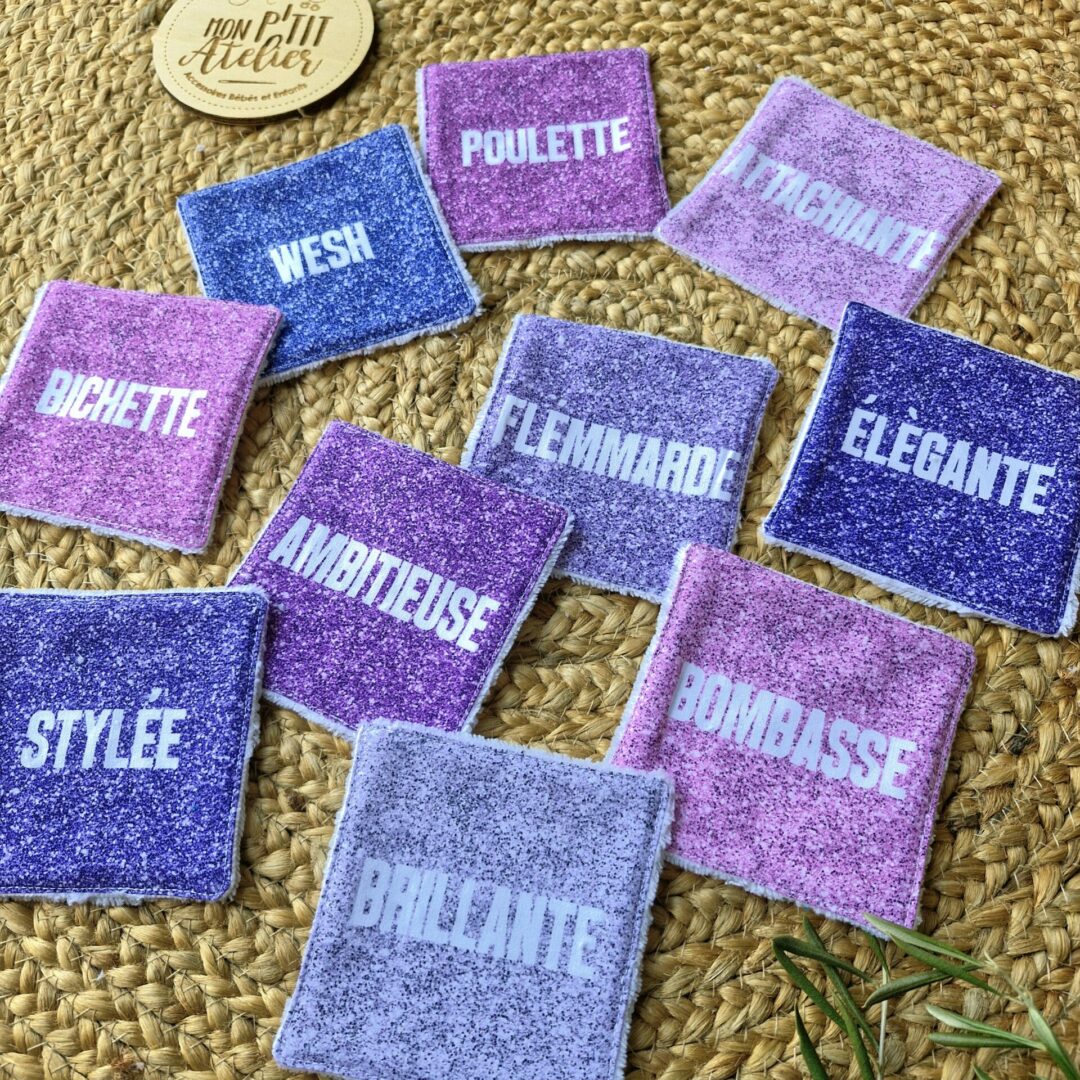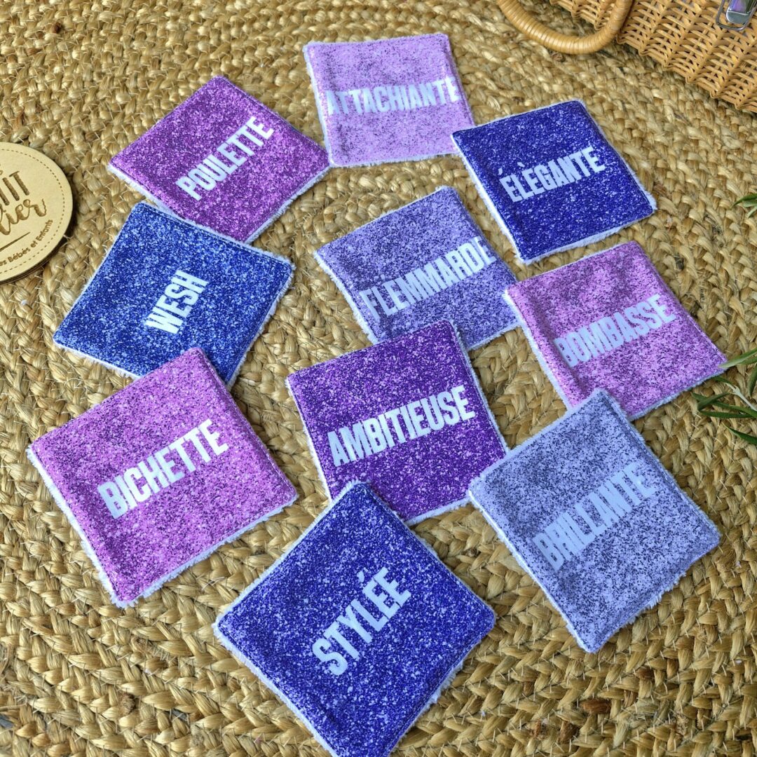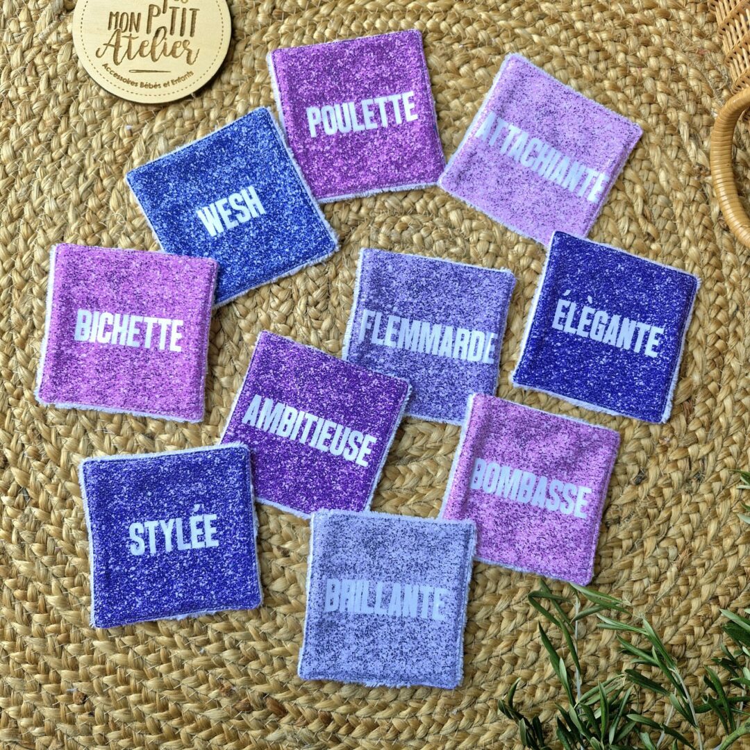 Ces lingettes lavables, en éponge bambou et tissu à paillettes, sont très douces et agréables pour nettoyer la peau.
