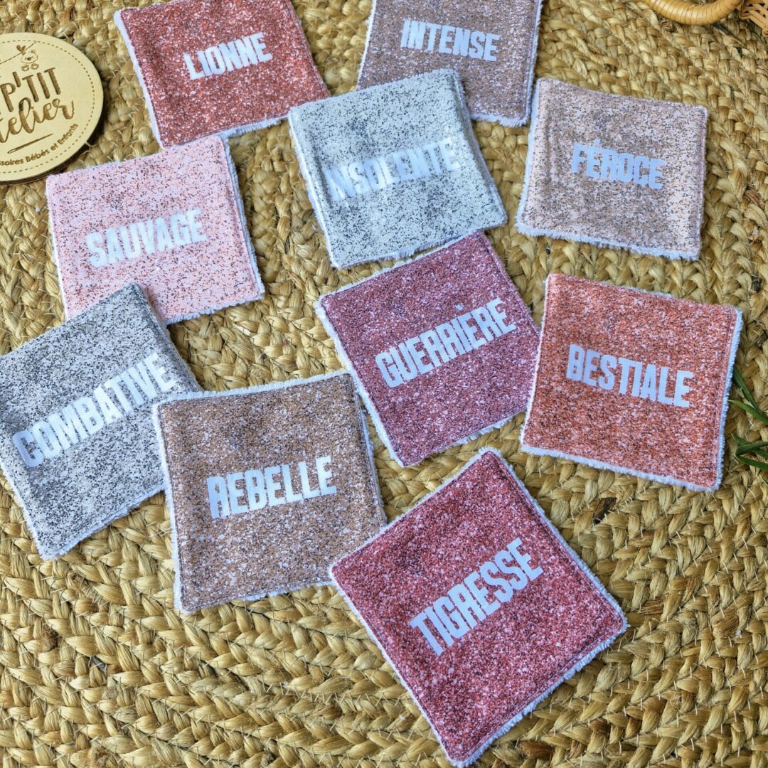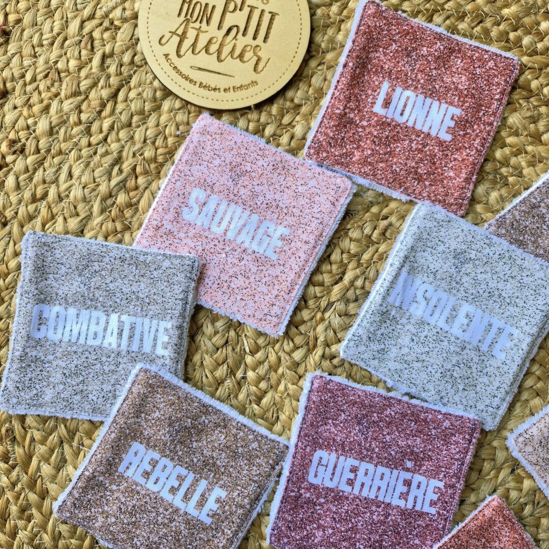Ces lingettes lavables, en éponge bambou et tissu à paillettes, sont très douces et agréables pour nettoyer la peau.