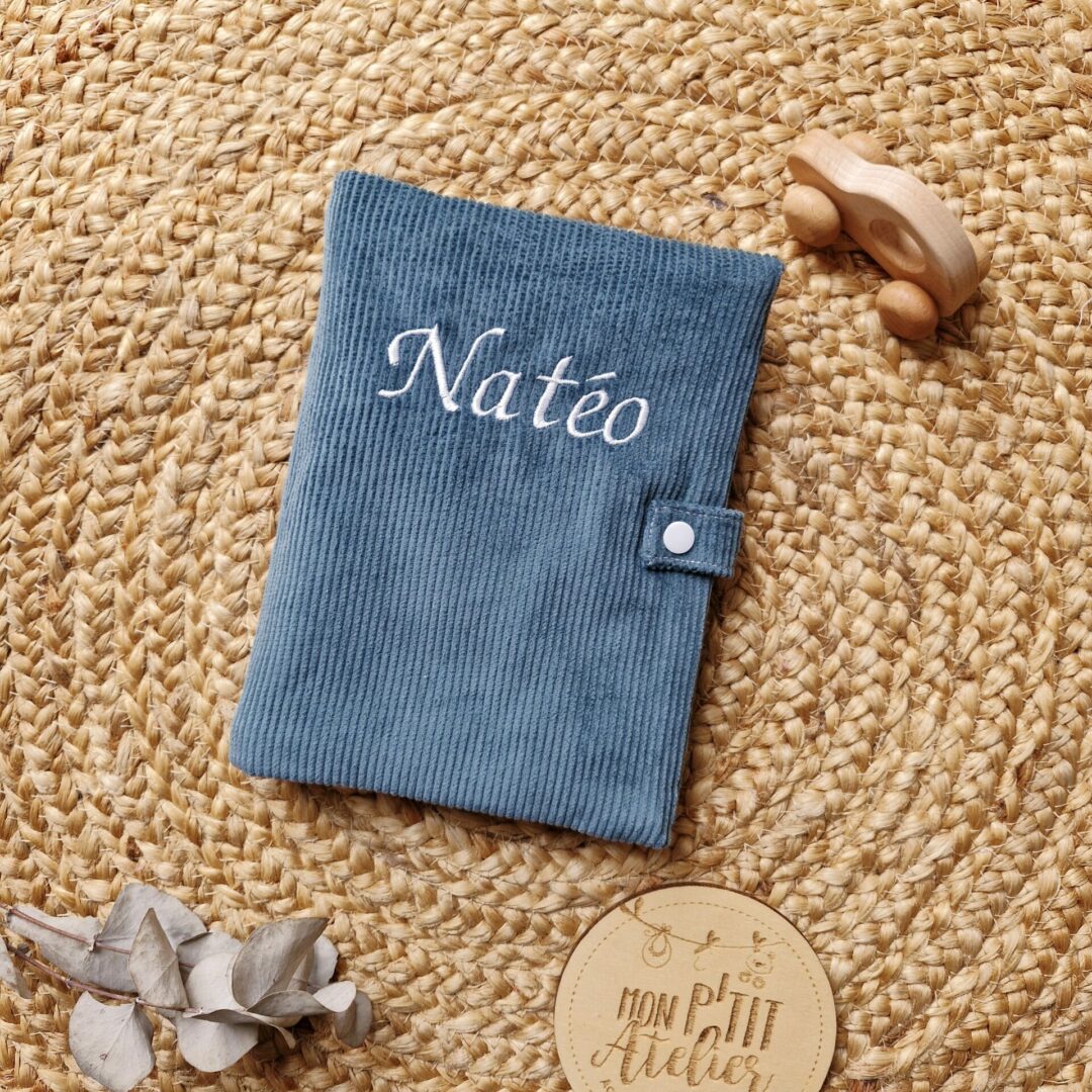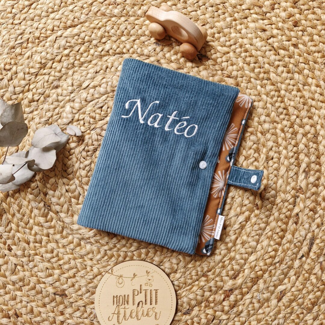 Protège carnet de santé en velours doublé d’un imprimé